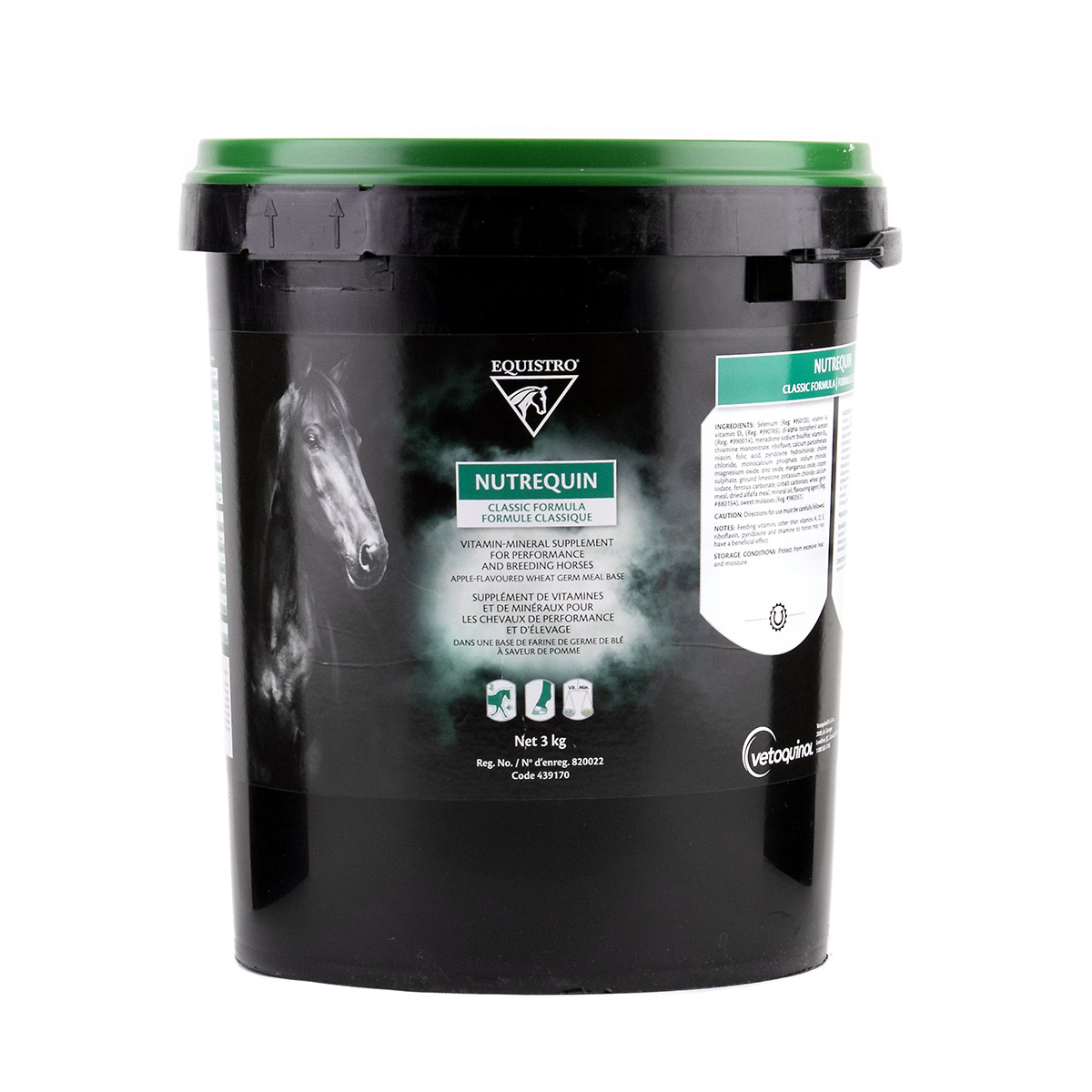 Vitamin - Mineral Supplement in an Apple Flavoured, Wheat germ meal base for Perfomrance and Breeding Horses. GUARANTEED ANALYSIS: Vitamin A (min) 160,000 I.U./kg Vitamin D3 (min) 32,000 I.U./kg Vitamin E (min) 3,000 I.U./kg Vitamin K* (min) 100 mg/kg Vitamin B12 (min) 2,200 µg/kg Pyridoxine hydrochloride (min) 486 mg/kg Thiamine (min) 400 mg/kg Riboflavin (min) 110 mg/kg Pantothenic Acid (min) 280 mg/kg Niacin (min) 400 mg/kg Folic Acid (min) 100 mg/kg Choline (min) 6,000 mg/kg Calcium (act) 9.05% Phosphorus (act) 4.37% Magnesium (act) 0.61% Zinc (act) 5,020 mg/kg Manganese (act) 1,045 mg/kg Copper (act) 200 mg/kg Iodine (act) 10.5 mg/kg Iron (act) 3,900 mg/kg Cobalt (act) 25 mg/kg Fluorine (max) 1,000 mg/kg