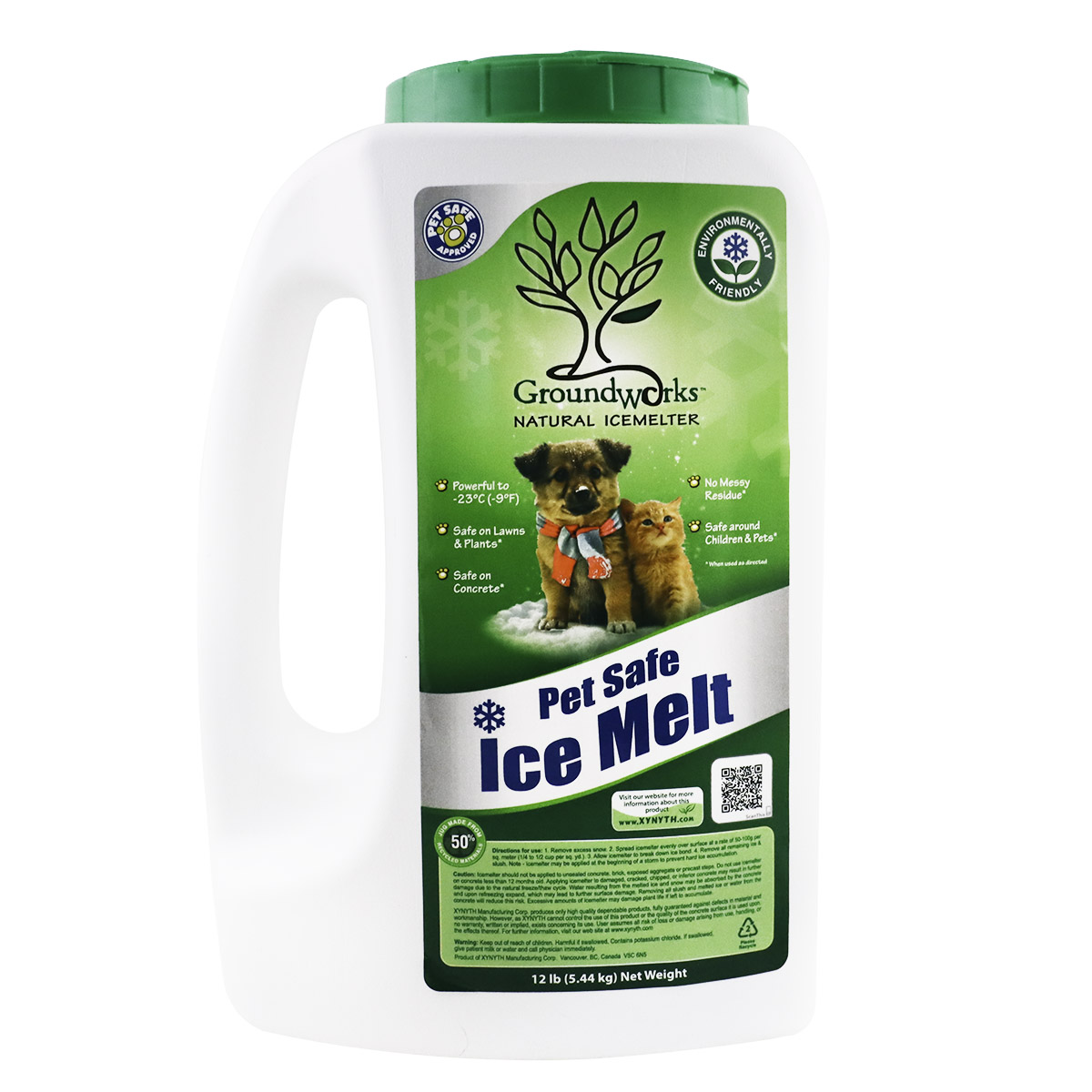 GroundWorks Natural™ Icemelter is a premium fertilizer based product designed specifically to melt ice and snow effectively, while being completely eco-friendly, pet safe and easy to use. Features: *Works effectively to -23°C (-9°F), melting ice and snow even in the toughest winter conditions. *Begins to work immediately. Use 50 – 100 grams per square metre (1/4 – 1/2 cup per square yard). *Is a fertilizer based product which will not harm vegetation or soil structure, when used as directed. It is harmless on groundwater systems. *Does not chemically affect quality air entrained concrete or treated wood. It allows for a greater volume of water to evaporate, assisting in the prevention of damage to concrete associated with freeze/thaw cycles. *Does not leave an oily residue. It reduced to a colorless and odourless liquid with a more natural PH balance. *Will not harm humans or animals. It is safe to handle. Gloves are optional. WHMIS exempt in Canada. OSHA exempt in USA *Will not harm humans or animals. It is safe to handle. Gloves are optional. WHMIS exempt in Canada. OSHA exempt in USA. *Will not lose its effectiveness during prolonged storage or when opened. It does not require special storage facilities nor special handling procedures thar are common to many other ice melting products. *Is supported both in-store and nationally with point-of-sale material and advertising campaigns. Xynyth Manufacturing offers marketing strategies that work. *Is completely safe for use around children and pet.