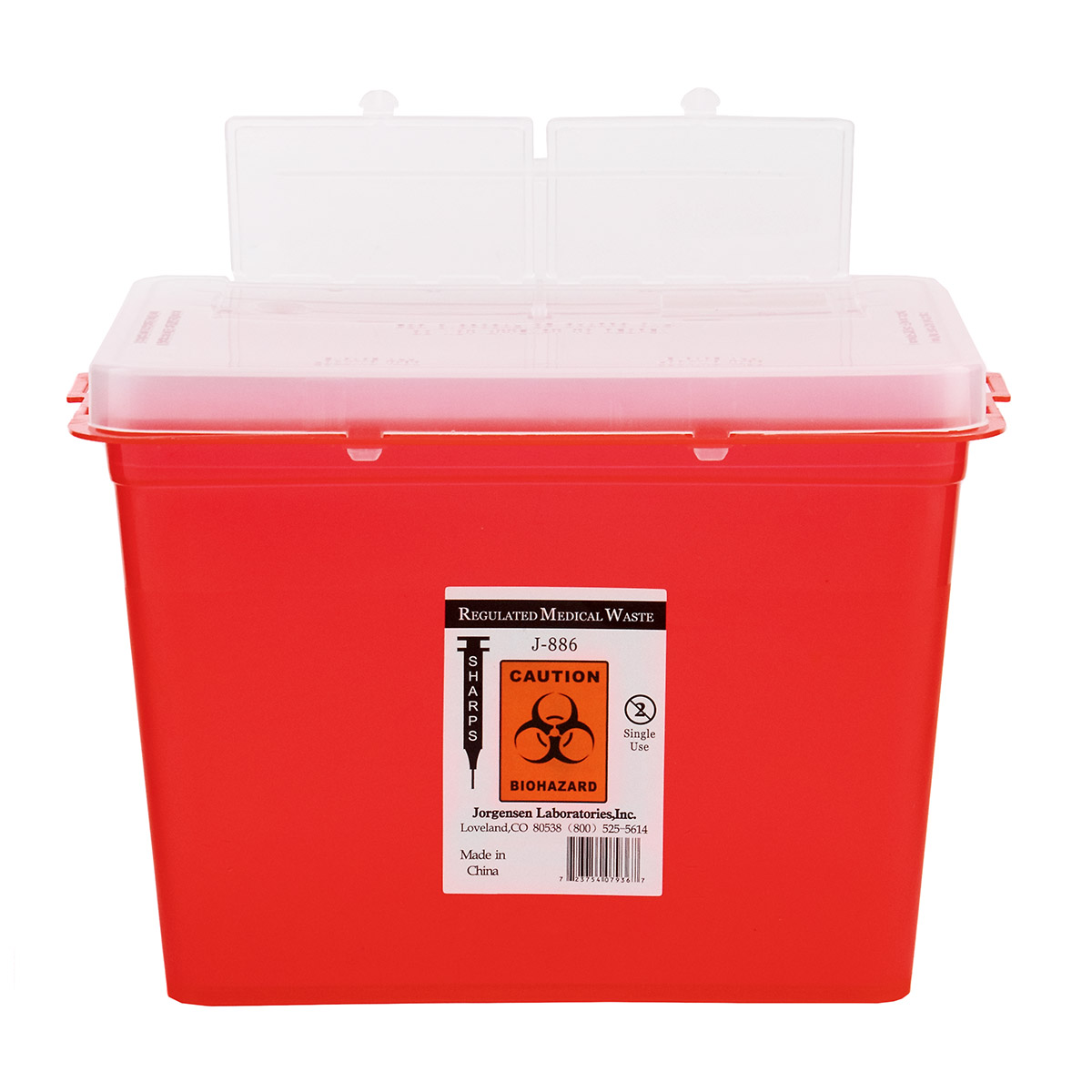 Veterinarians increasingly understand the need to be in compliance with government regulations from agencies like OSHA and the EPA. These regulations require proper disposal of medical waste in containers specifically designed for such use. These red plastic containers are especially designed for easy and proper disposal of items such as hypodermic needles, suture needles, and scalpel blades. The top lid has a special slot that helps removal of hypodermic needles from their hub. When the container is completely full, the lid seals permanently and tightly for proper disposal. Bottom: 18cm long x 12 cm wide Top: 20cm long x 14cm wide Height: 16cm Note: This four liter holds more than the popular four quart size.